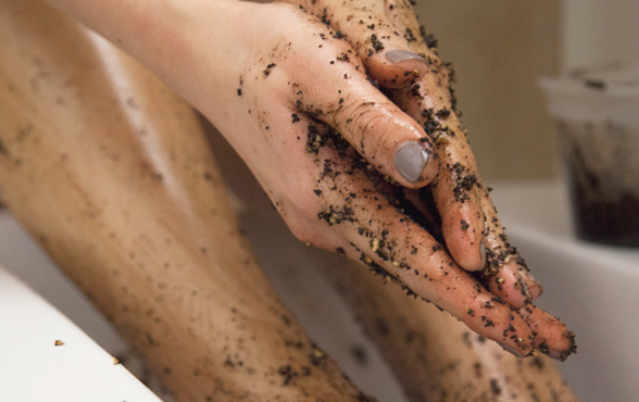 Do có tác dụng thúc đẩy cơ thể sản xuất tế bào da mới nên cà phê còn được dùng như một loại nguyên liệu giúp tẩy tế bào chết hiệu quả, khắc phục tình trạng da bị khô mốc, sần sùi ...Bạn cần chuẩn bị 3 thìa bã cà phê vừa lọc qua phin, 1 muỗng canh dầu ô liu (hoặc dầu dừa, dầu hạnh nhân), 1 muỗng canh đường nâu. Trộn đều hỗn hợp khô gồm cà phê và đường nâu, sau đó cho thêm dầu và bôi hỗn hợp lên da mặt. Massage nhẹ nhàng theo chuyển động tròn sau đó rửa sạch với nước ấm.